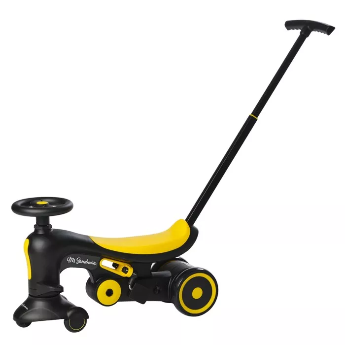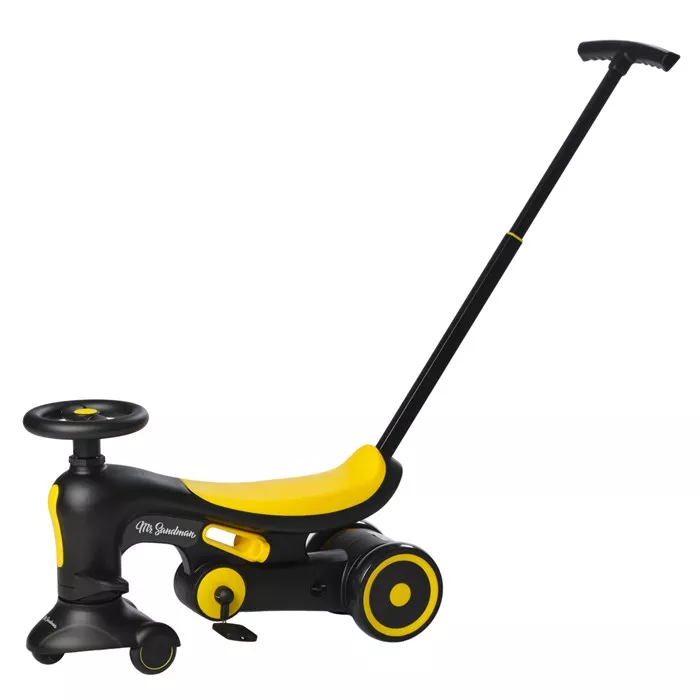 Толокар с родительской ручкой может быть отрегулирован по высоте в четырех положениях, где высота ручки может быть 67, 84, 89 и 92см. Это позволяет родителям настроить машинку толокар под свой рост для удобства использования, максимальная высота машинки с родительской ручкой - 114см. Детский веломобиль легкий и компактный, в сложённом виде длина игрушки - 62см, ширина - 20см, а высота - 40см. Педали, как и родительская ручка, съёмные. Кроме этого, педали могут иметь свободный ход, на детском велосипеде есть специальный переключатель. Задние колеса детского толкателя регулируются по ширине в зависимости от целей многофункциональной детской машинки. Максимальная долговременная нагрузка детского велосипеда 4 в 1 составляет 35кг.