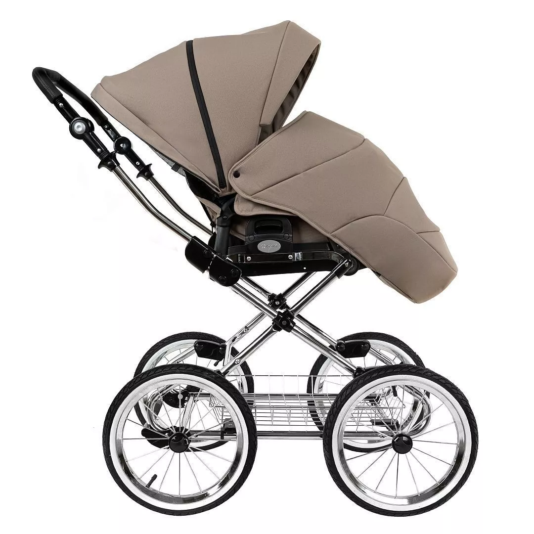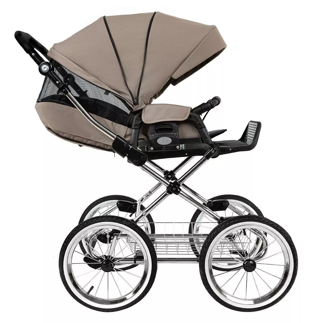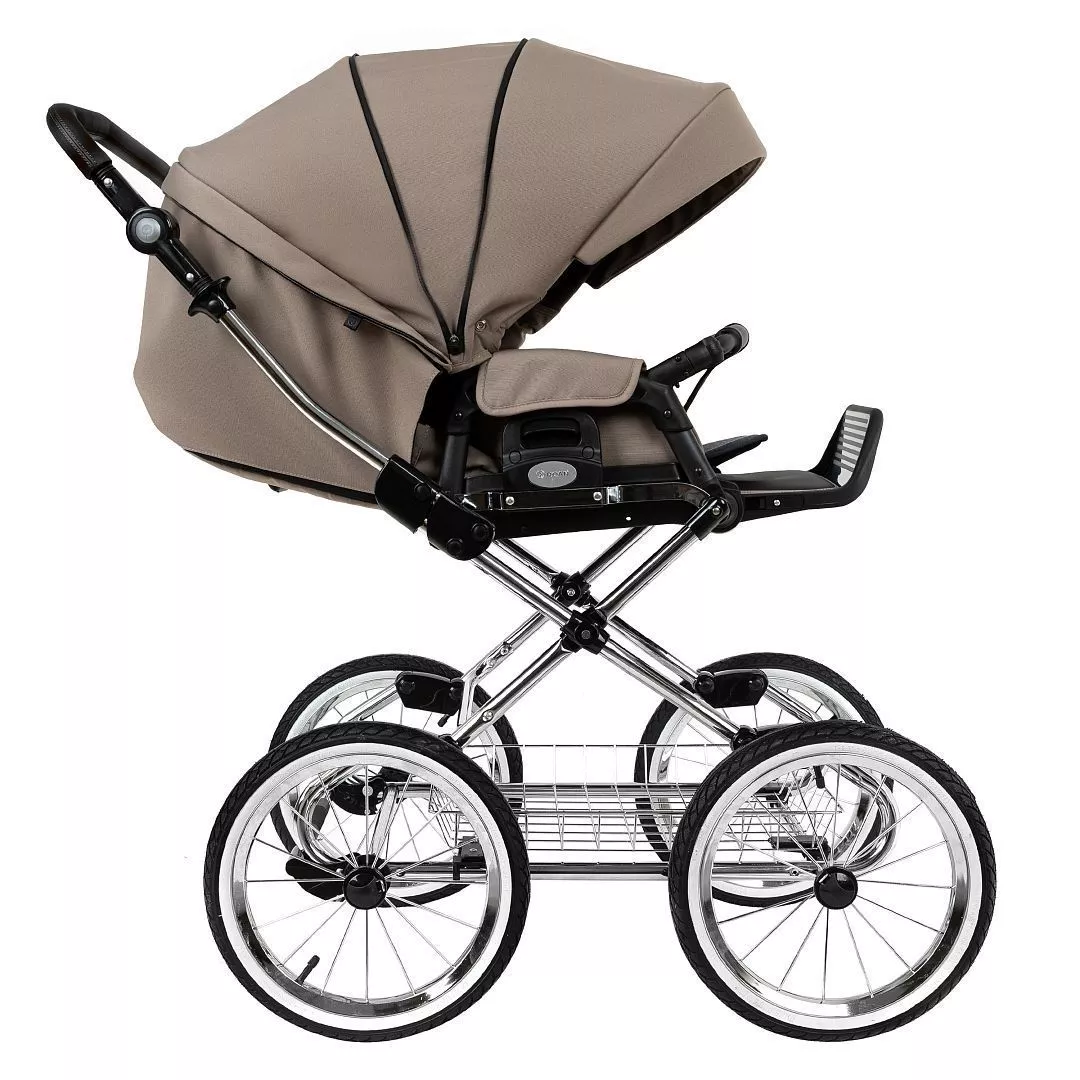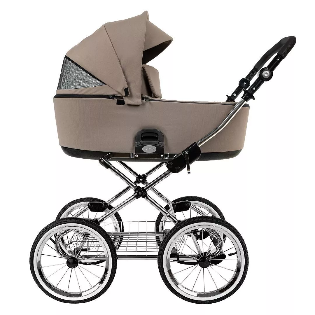 Рама хромированная — не ржавеет, не царапается. Складывается книжкой, фиксируется автоматически. Выдерживает вес до 15 кг в прогулочном блоке.