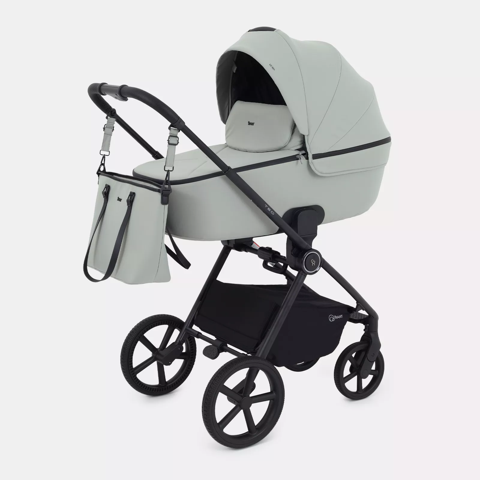 Всё включено: дождевик, москитная сетка, утеплённая накидка на ножки, адаптеры для автолюльки и стильная сумка для мамы — вмещает даже ноутбук 15″.