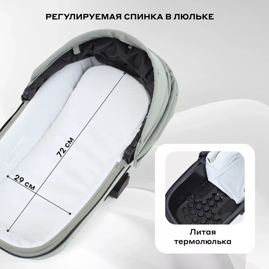 Литая термолюлька, автоматическое складывание вместе с прогулочным блоком, удобные кнопки с памятью и регулируемый по высоте капюшон. Всё, чтобы родителям было проще, а малышу — комфортнее.Дизайн — динамичный, блоки снимаются одним движением. Эта модель создана для тех, кто ценит технологии и удобство с первого дня.