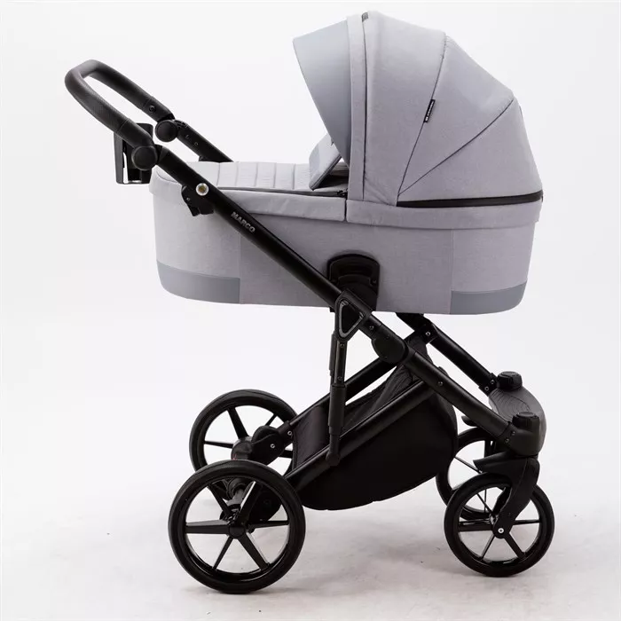 Бренд Adamex постоянно совершенствует свою продукцию в соответствии с ожиданиями клиентов. Люлька коляски Адамекс Марко изготовлен из пиоцелана — особого гибридного материала, сочетающего в себе лучшие свойства пенополистирола и пенополипропилена (известного по использованию в автокреслах). Пиоцелан — материал высокой прочности, низкой плотности и гибкости, а также обеспечивает отличную теплоизоляцию и защиту от шума.