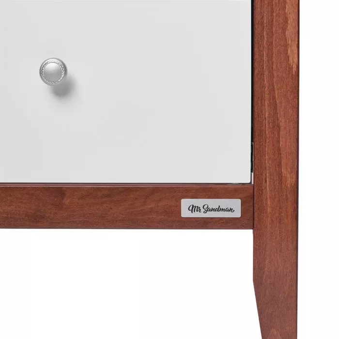 «Delight» - комод с пеленальным столиком от «Mr Sandman». Основание комода и отдельные элементы столика изготовлены из массива бука. Стенки, фасады, ящики и некоторые элементы столика изготовлены из крашенного МДФ, а задняя стенка и дно ящиков - из ХДФ. При производстве используются экологически чистые лаки и краски на водной основе. Комод оснащен тремя выдвижными ящиками, задняя и боковые стенки которых имеют высоту вровень с фасадами, что позволяет максимально использовать объем ящиков. Верхний ящик предназначен для хранения мелких предметов. Ящики комплектуются шариковыми телескопическими направляющими с доводчиками, что делает открытие ящиков более безопасным для малышей.