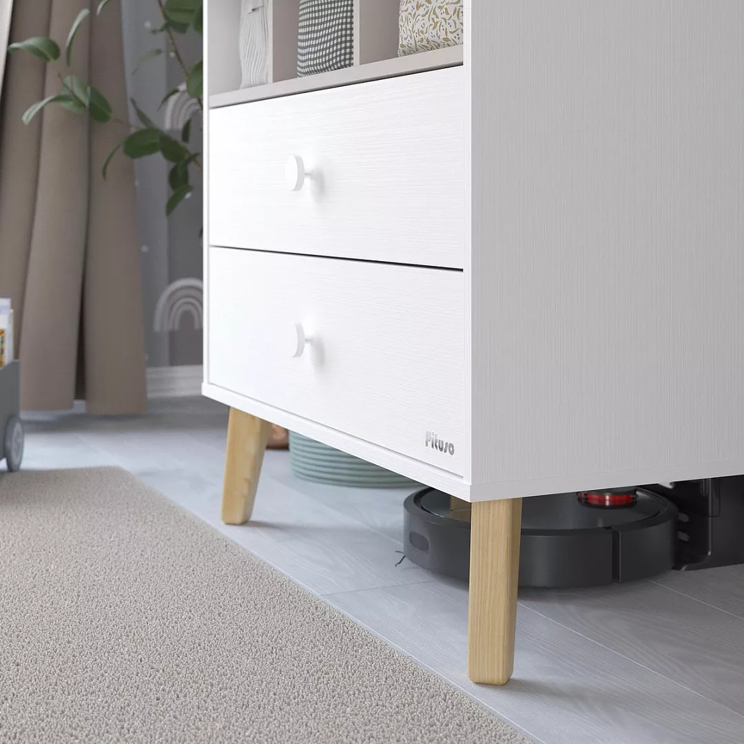 Высота ножек 18 см, поэтому под комодом легко делать уборку или даже можно разместить под ним робот-пылесос.