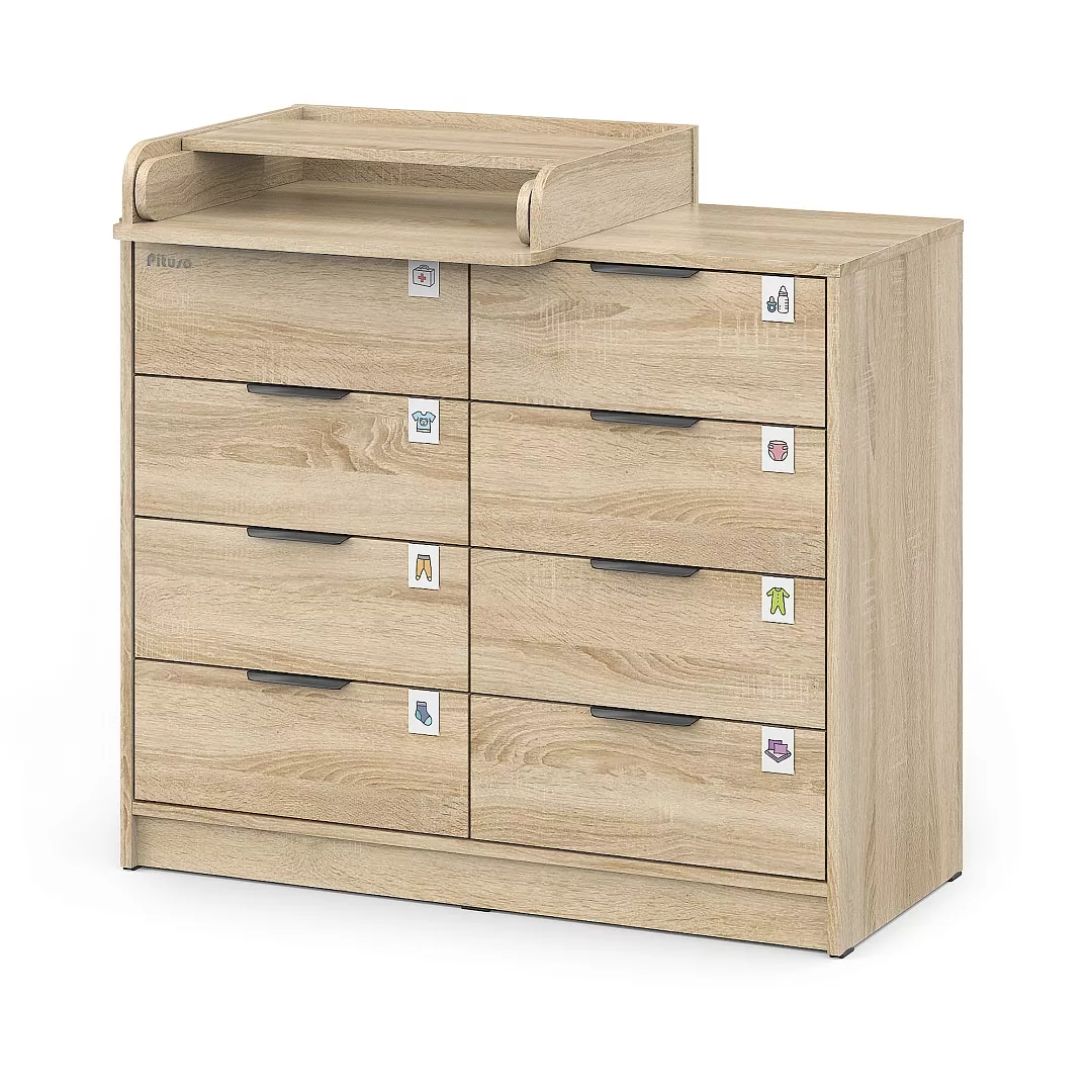 Комод пеленальный Pituso Optimum–большой вместительный 8-ми ящиков, комод с легкосъемным раскладным пеленальным столиком. Ширина комода 100 см.