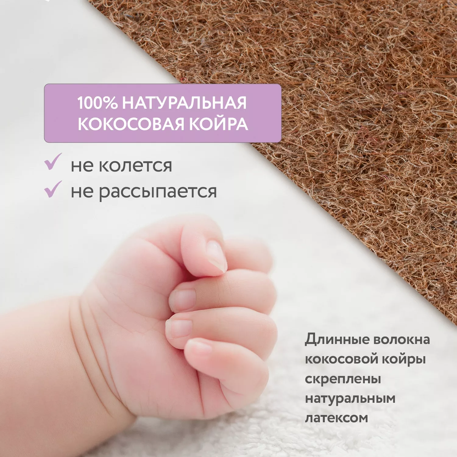 Натуральная кокосовая койра, скрепленная натуральным латексом, признана одним из лучших наполнителей для детских матрасов, кроме того, она очень неприхотлива в уходе. На кокосовую сторону врачи-ортопеды рекомендуют укладывать новорожденных. Жесткая кокосовая койра «отвечает» за то, чтобы формирующийся позвоночник ребенка не прогибался. После года, когда косточки и скелет малыша окрепнут, матрас можно перевернуть на более мягкую сторону из анатомического латекса.