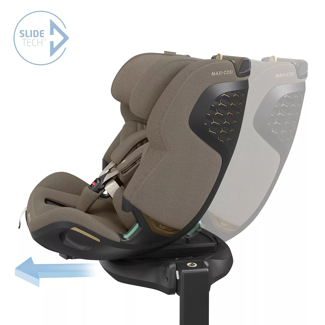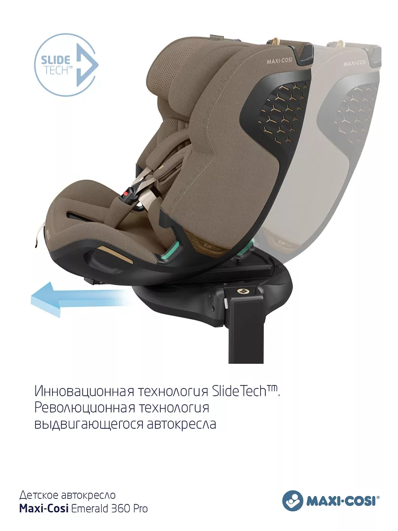 Maxi-Cosi Emerald 360 Pro выделяется среди аналогов благодаря уникальной запатентованной технологии SlideTech®, которой нет ни у одного другого кресла на рынке. Ближайший конкуренты — также имеют поворот 360°, но не имеют функции выдвижения.