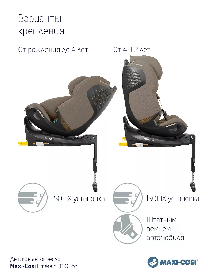 Инвестиция в Emerald 360 Pro — это инвестиция в 12 лет спокойствия, защиты и удобства на каждой поездке. С легендарным качеством Maxi-Cosi и более чем 40-летним опытом компании вы можете быть уверены: ваш ребёнок находится в надёжных руках.