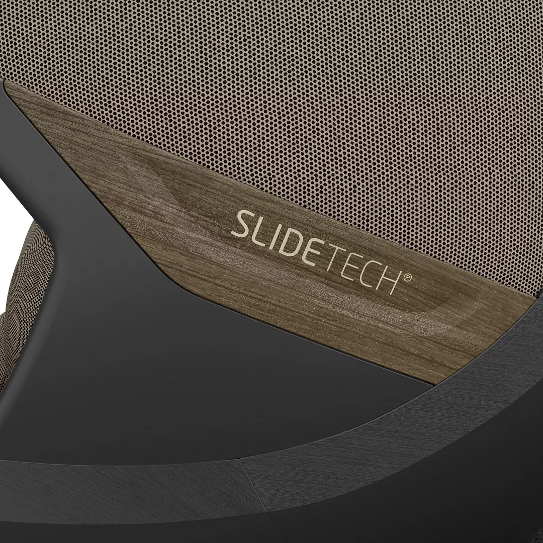 - Революционная технология SlideTech® — единственная на рынке. Кресло поворачивается на 360° и выдвигается к двери на 11 см одним движением рычага. Вы сажаете ребёнка без наклонов в салон, без ударов головой о дверной проём, без нагрузки на спину. Это особенно важно для новорождённых и при частых поездках.