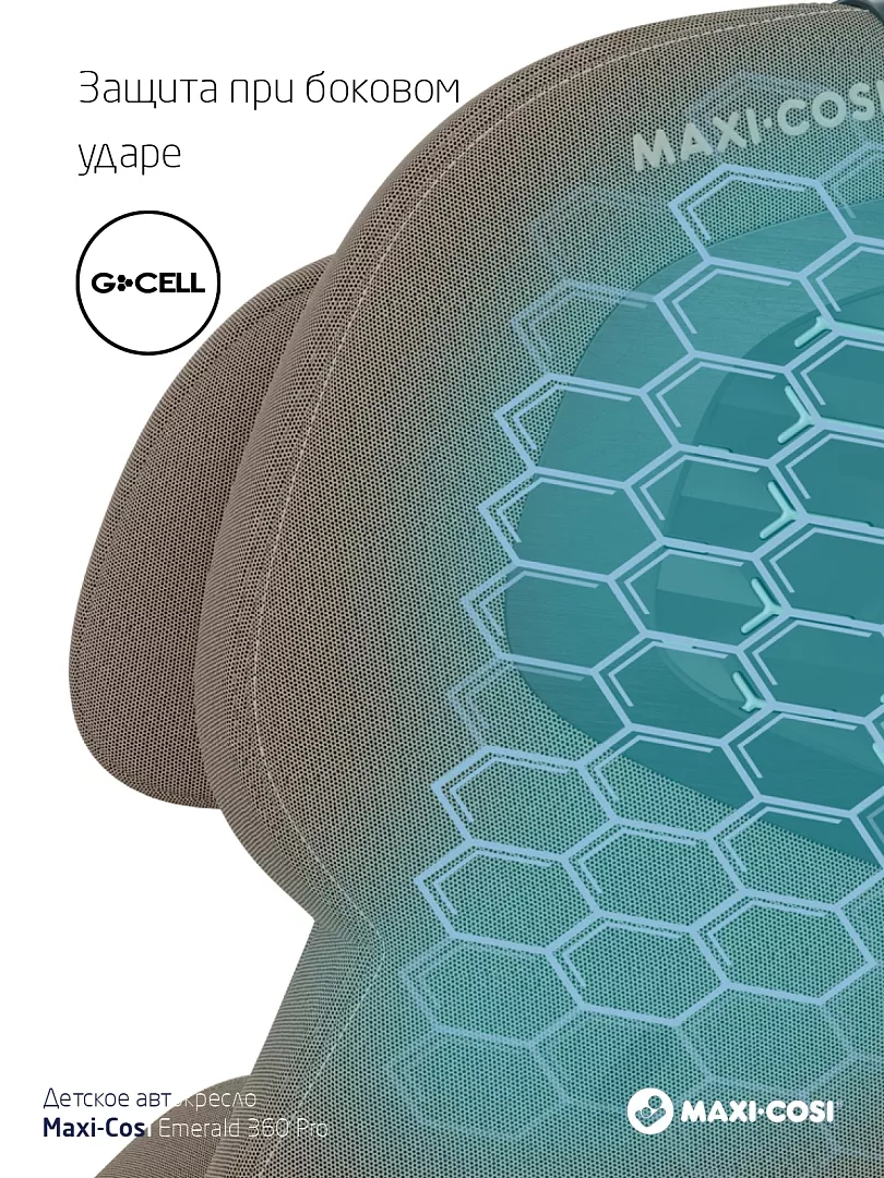 Инновационная система G-CELL Side Impact Protection встроена непосредственно в боковые панели кресла и подголовник. При боковом столкновении эта структура распределяет силу удара по всей поверхности кресла, значительно снижая риск травм головы, шеи и плеч ребёнка. В отличие от многих кресел, где боковая защита добавляет объём и делает кресло громоздким, G-CELL полностью интегрирована в конструкцию, сохраняя компактность.