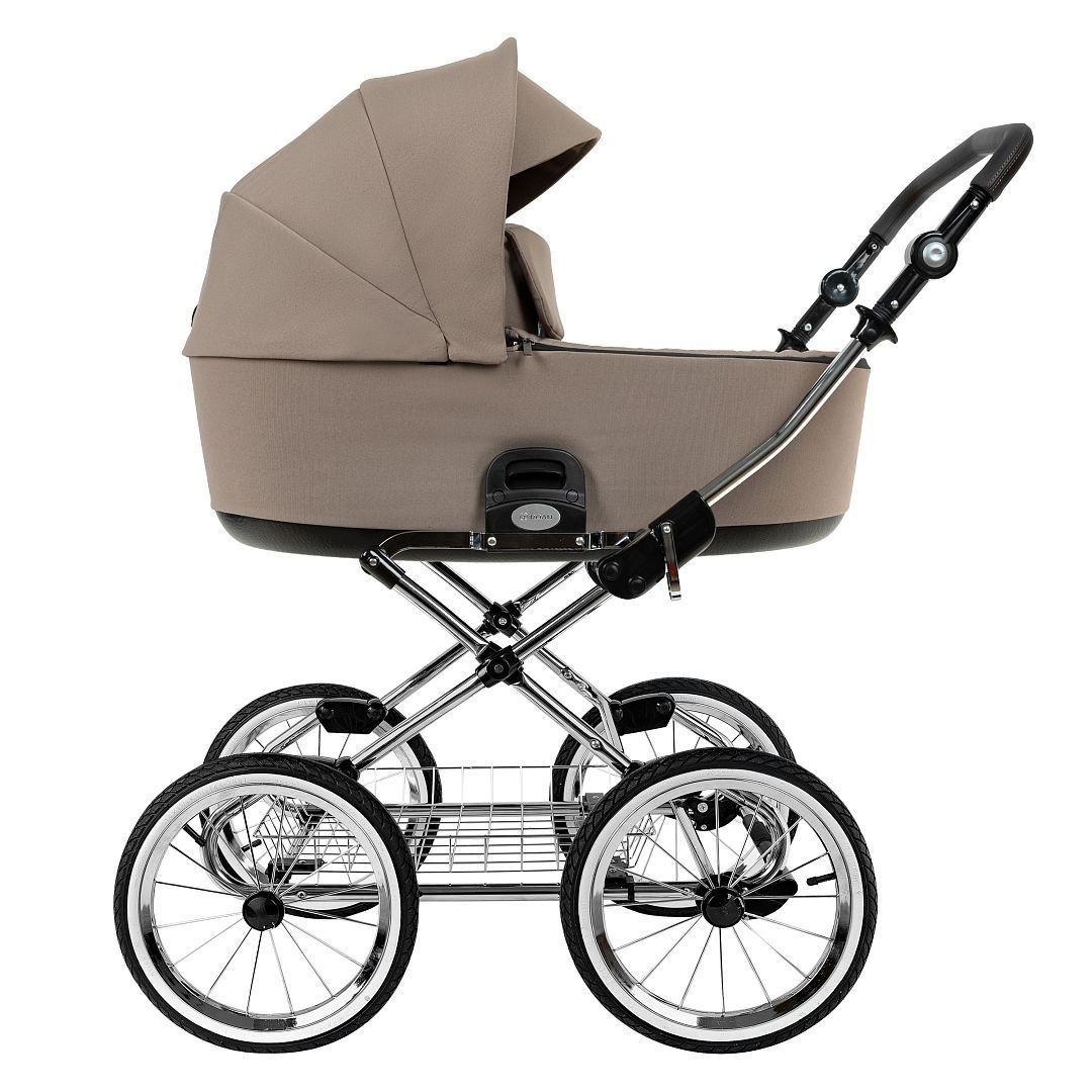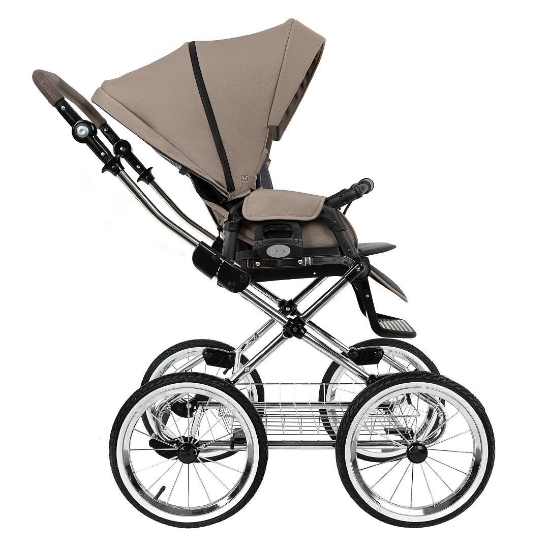 Амортизация пружинная на всех четырех осях — мягкие кулисы гасят удары и вибрации. Коляска качается продольно и поперечно как колыбель — можно укачивать ребенка прямо на ходу. Тормоз педальный — планка блокирует оба задних колеса одновременно. Срабатывает с первого нажатия.