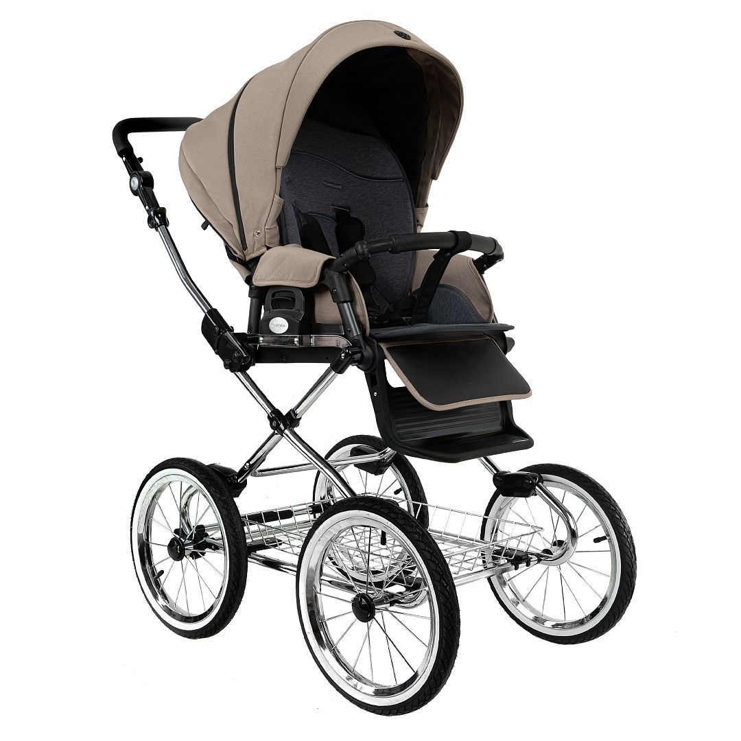 - Большие надувные колеса 14 дюймов. Диаметр 36 см — легко преодолевают сугробы, бордюры и разбитые дороги. Металлические спицевые диски с подшипниками обеспечивают мягкий накат. Коляска едет как по рельсам.