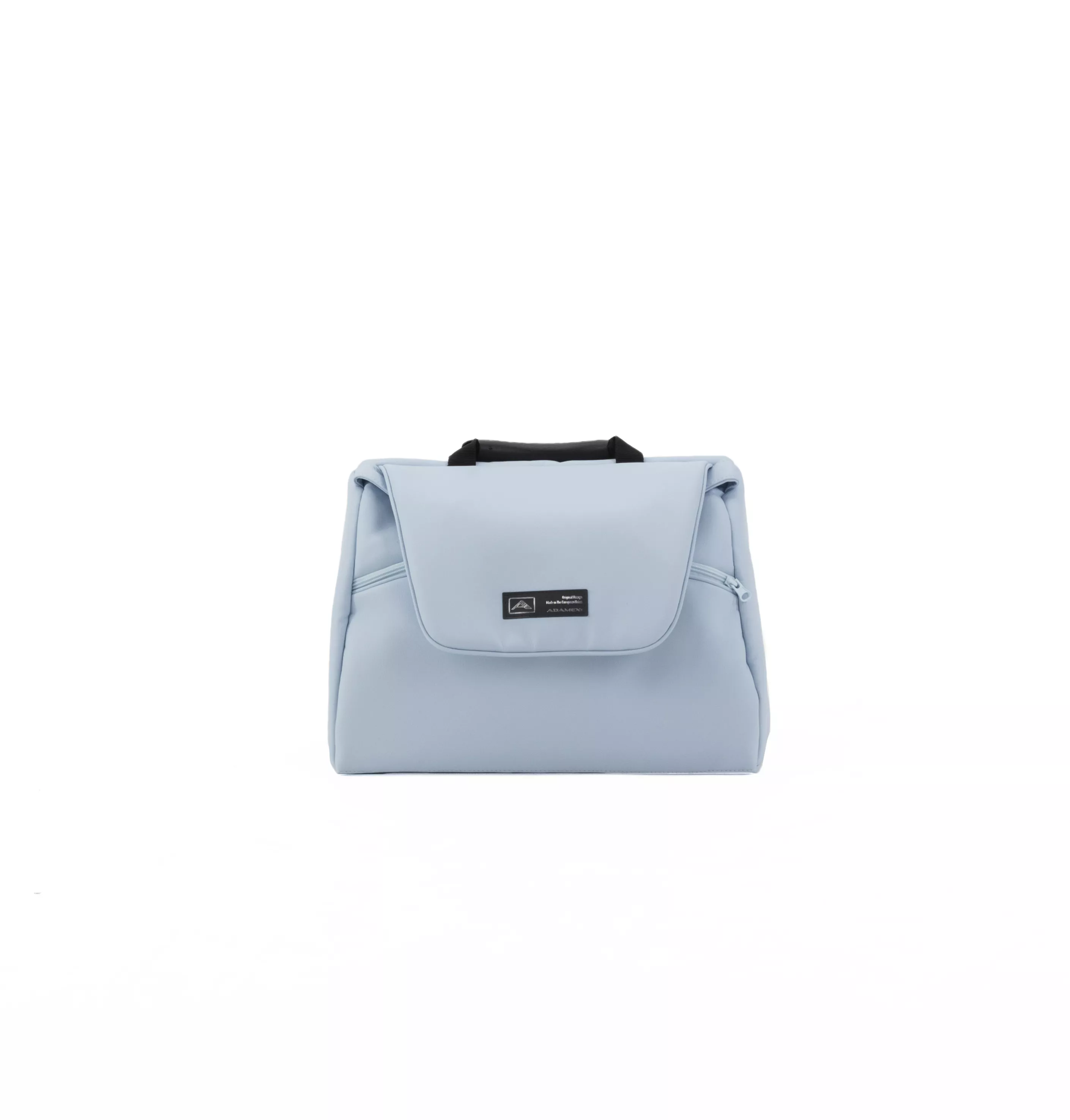 Передние колёса поворотные с фиксацией. Ручка регулируется по высоте. Корзина закрыта молнией — содержимое защищено от пыли и грязи.