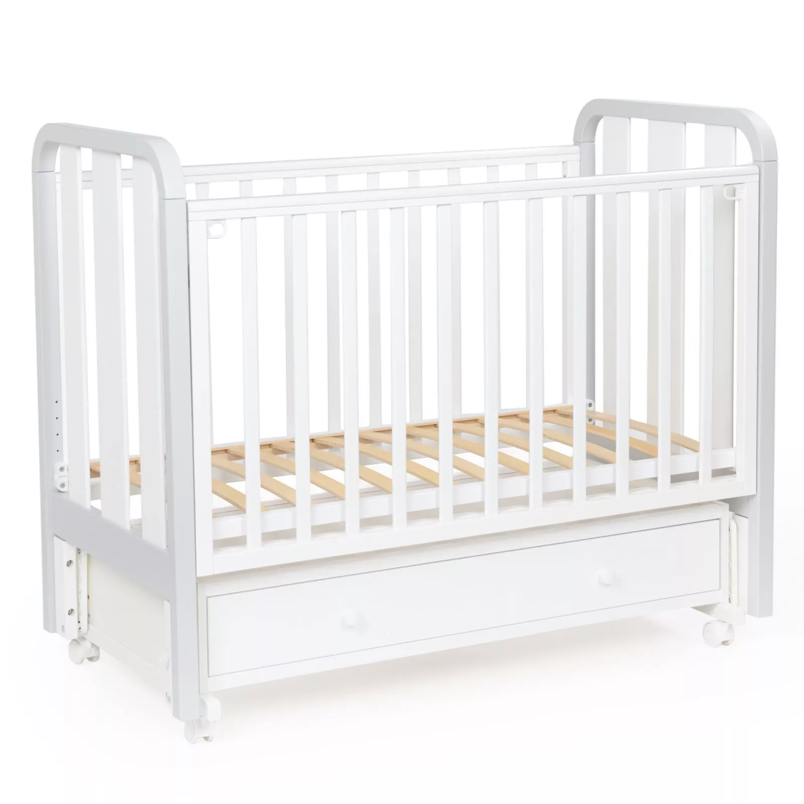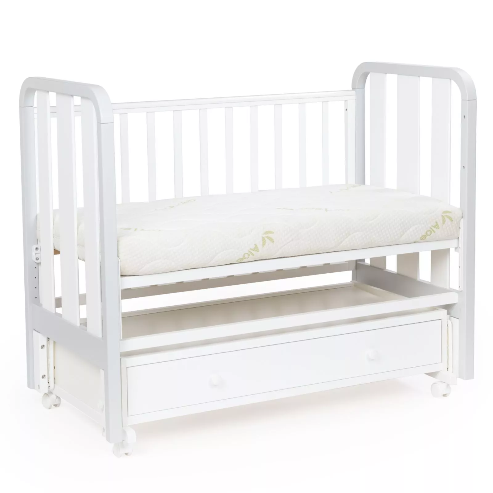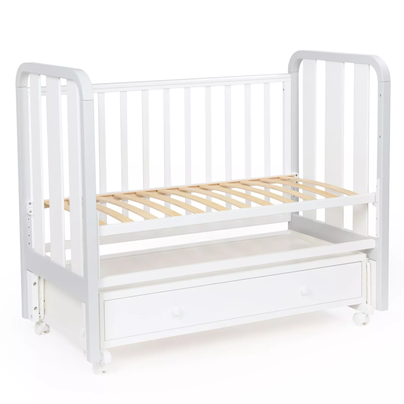 Просторный закрытый ящик в основании кроватки (106×34×10 см) идеально подходит для хранения постельного белья, подгузников, одежды или игрушек. Всё необходимое всегда под рукой, а детская остаётся аккуратной.