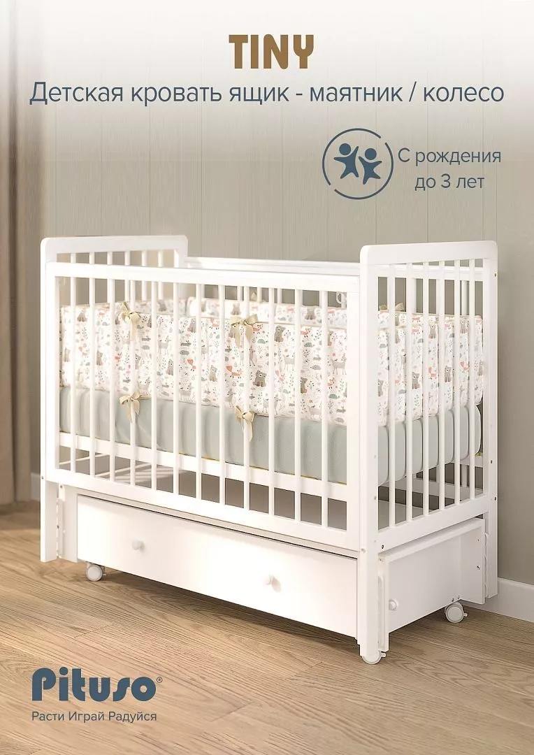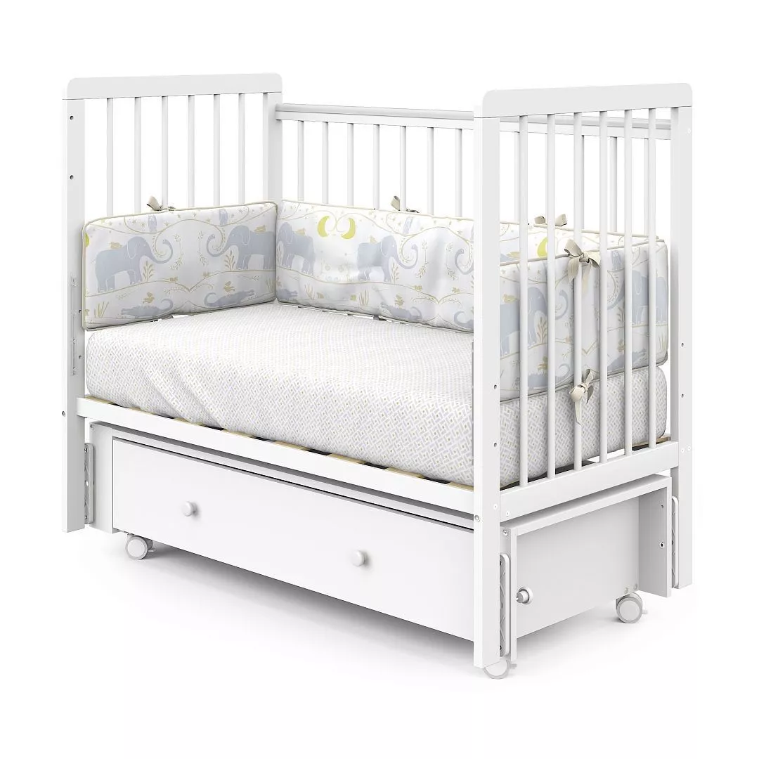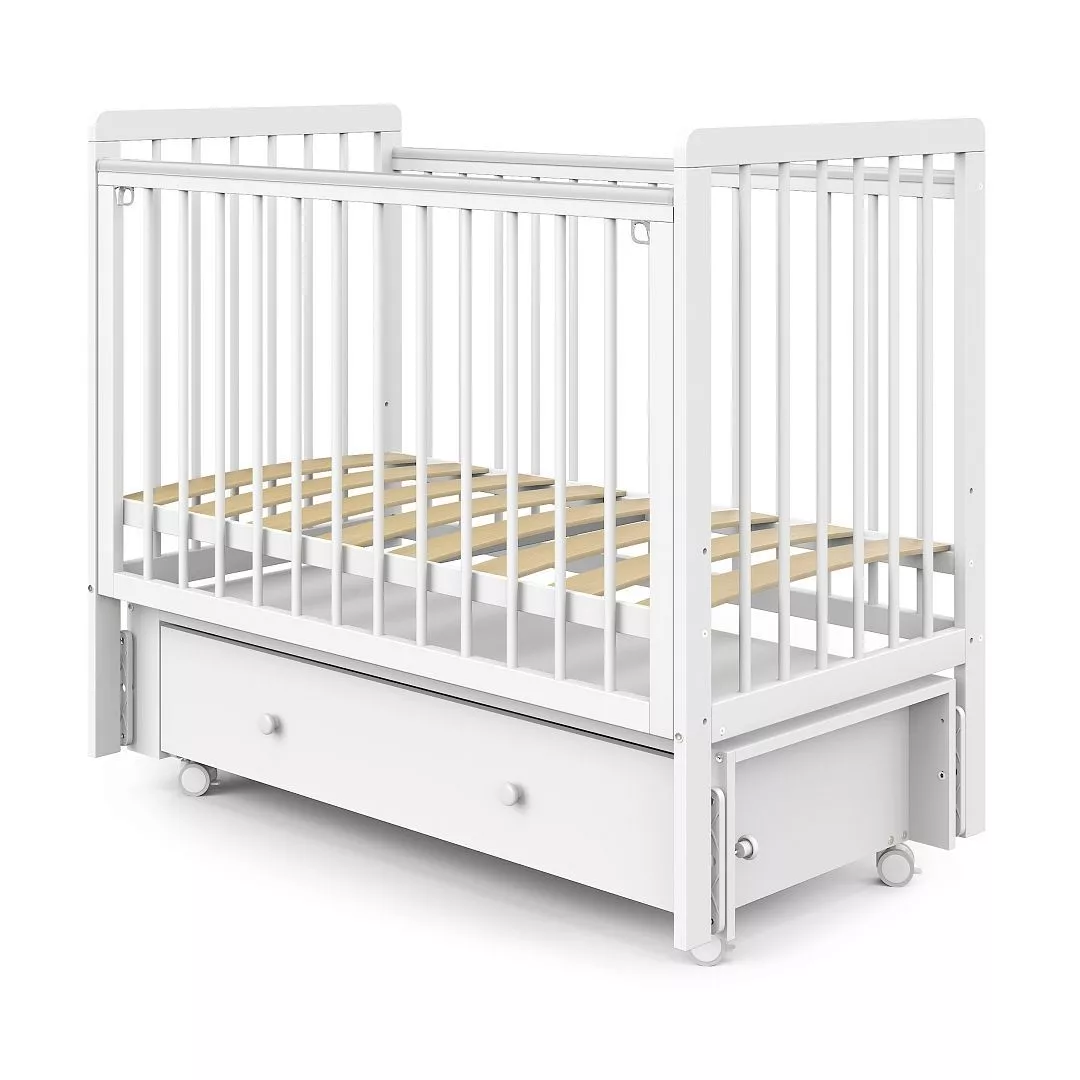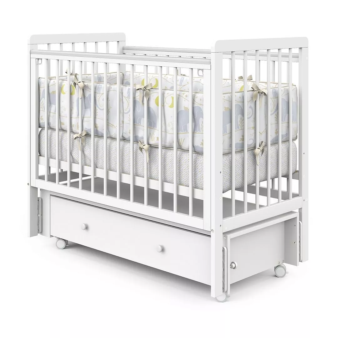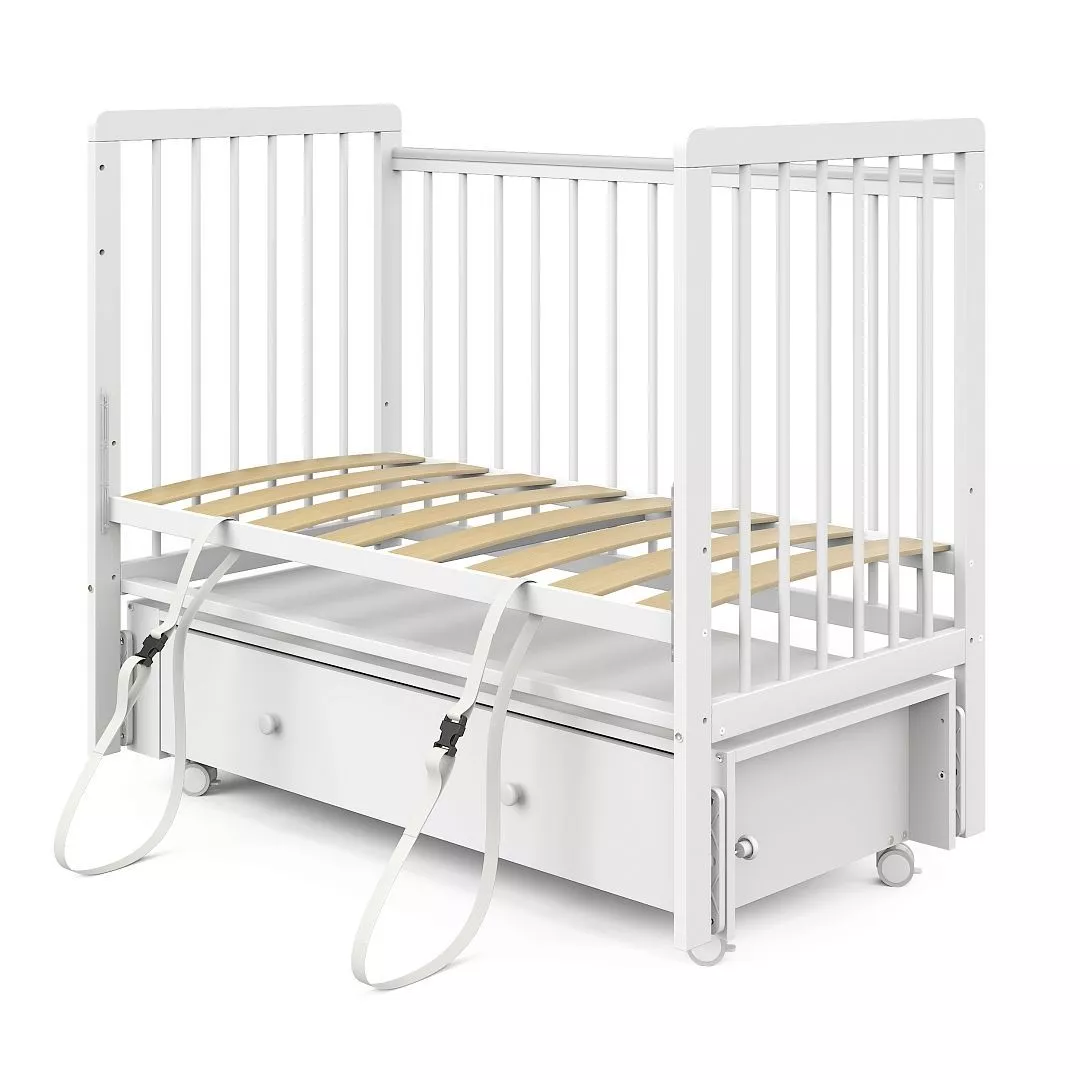 | Комплектация | Кроватка, маятниковый механизм с фиксаторами, колёса (4 шт.), выдвижной ящик, накладки-антигрызунки, система фастексов с ремешками, крепёж, инструкция |