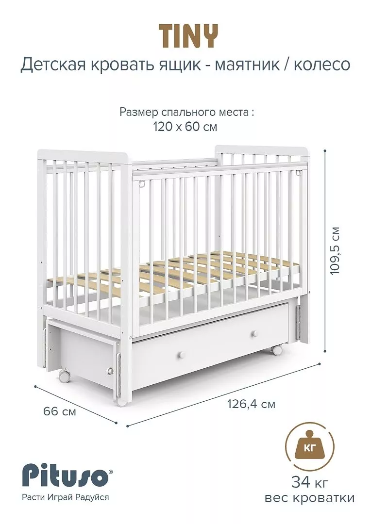 - Габариты кроватки: 126,4×66×109,5 см