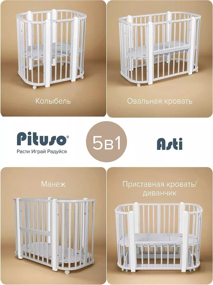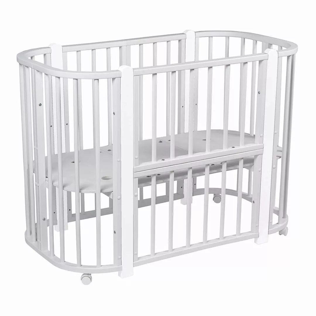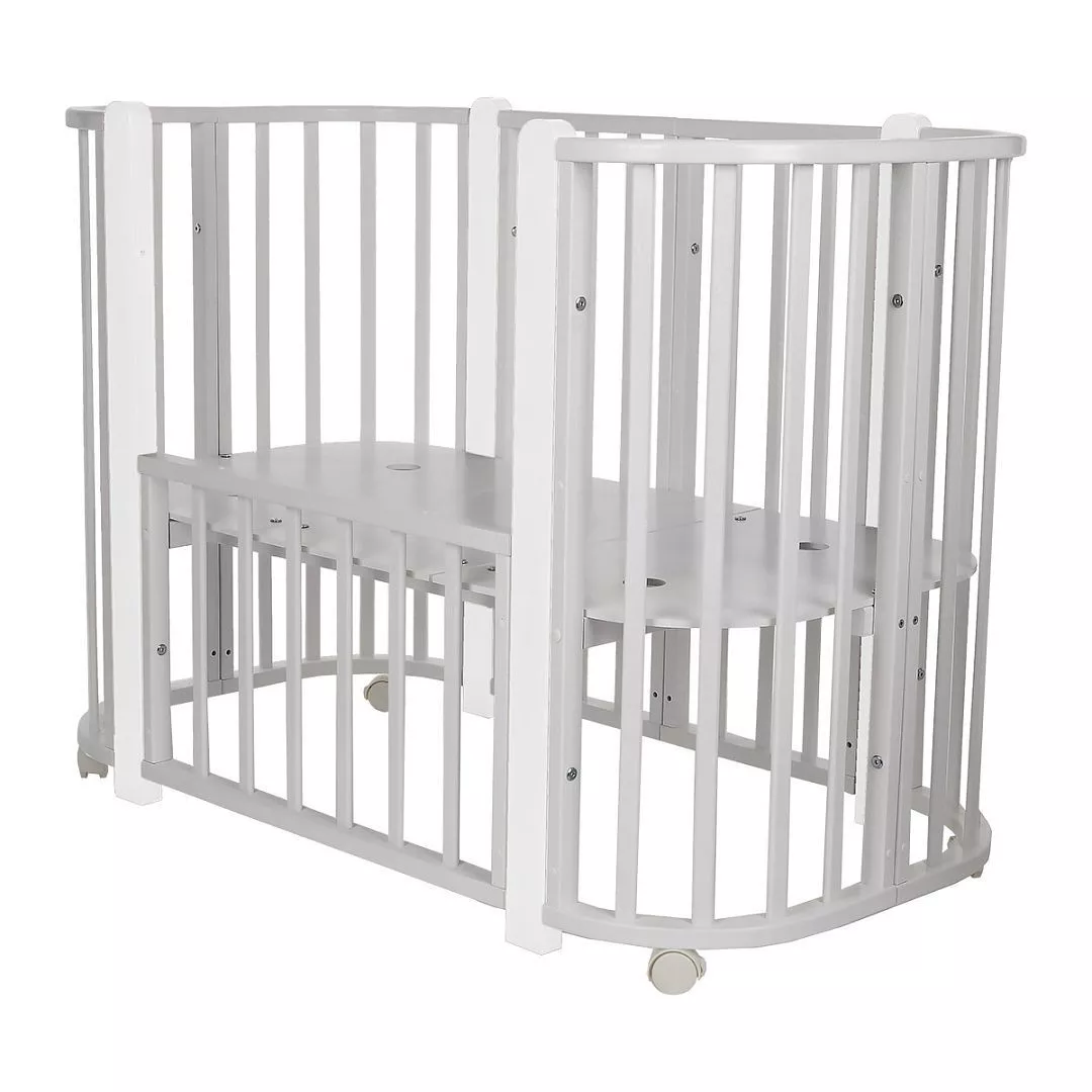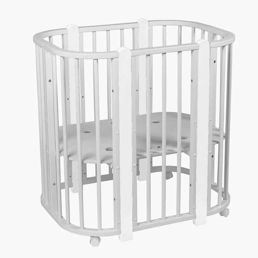 Приставная колыбель для новорождённых, овальная кроватка на маятнике, на колёсах, манеж для игр и диванчик для дневного отдыха. Одна покупка служит от рождения до 3 лет, проходя все важные этапы развития.